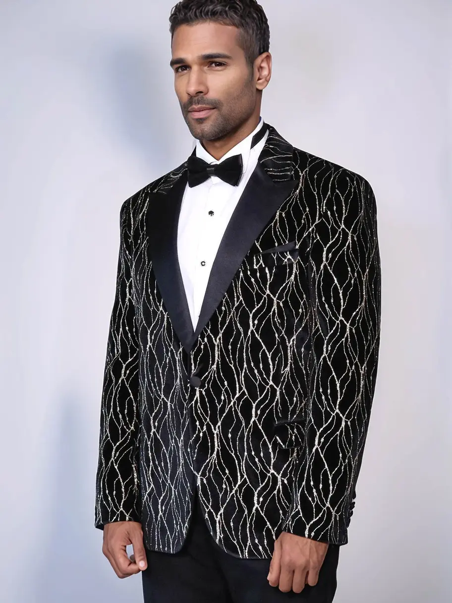 Gold Patterned Black Men Prom Blazer - Akron
