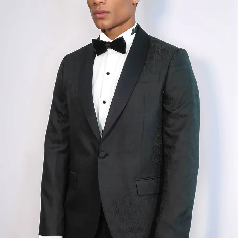 Pentagon Patterned Shawl Lapel Black Men Prom Blazer - Hoogvliet