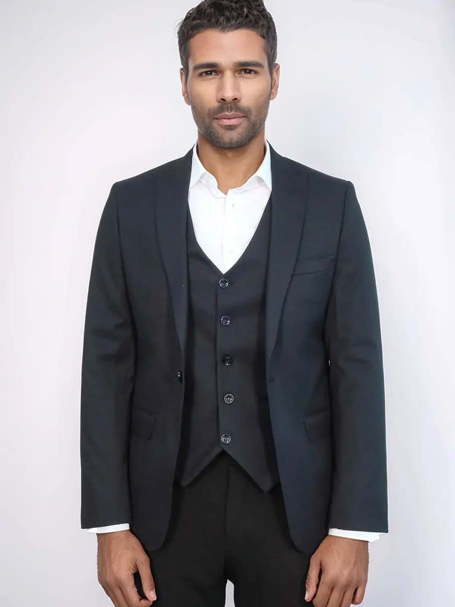 Plain Navy Blue Blazer Vest Set - Winter Haven