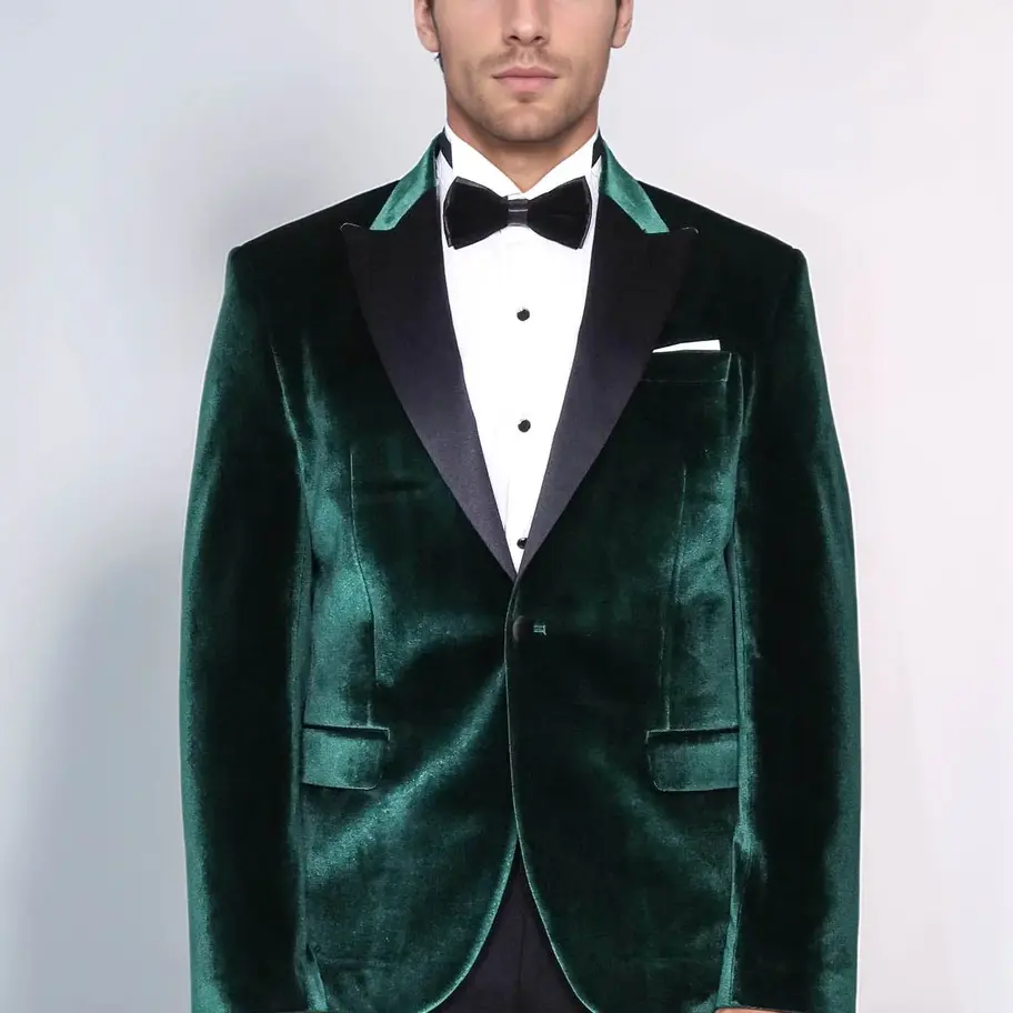 Slim Fit Peak Lapel Velvet Dark Green Men Prom Blazer - Danville
