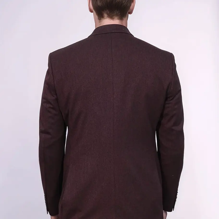 Textured Slim Fit Peak Lapel Burgundy Men Blazer - Wedel