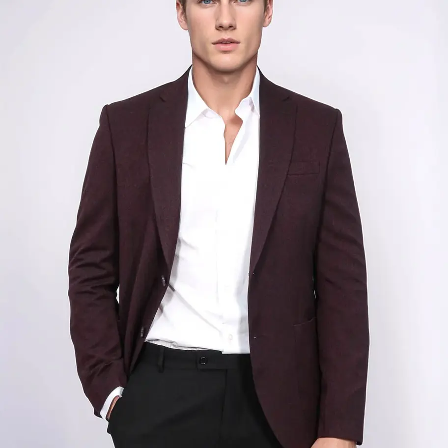 Men's jackets are designed with high quality materials and long-lasting with quality stitching details. These jackets are ideal clothing pieces for both work and special events. If you want to stand out and make a statement at special events, order this jacket now and make a difference! This jacket offers an eye-catching elegance with its burgundy color and self-pattern. The pointed collar and pouch pocket design make this jacket both modern and stylish. Pair this burgundy patterned jacket with a white shirt, black slim-fit trousers and black leather shoes for an unforgettable elegance. You can further customize your style by adding a black tie or bow tie. This combination is the perfect way to stand out at an event.